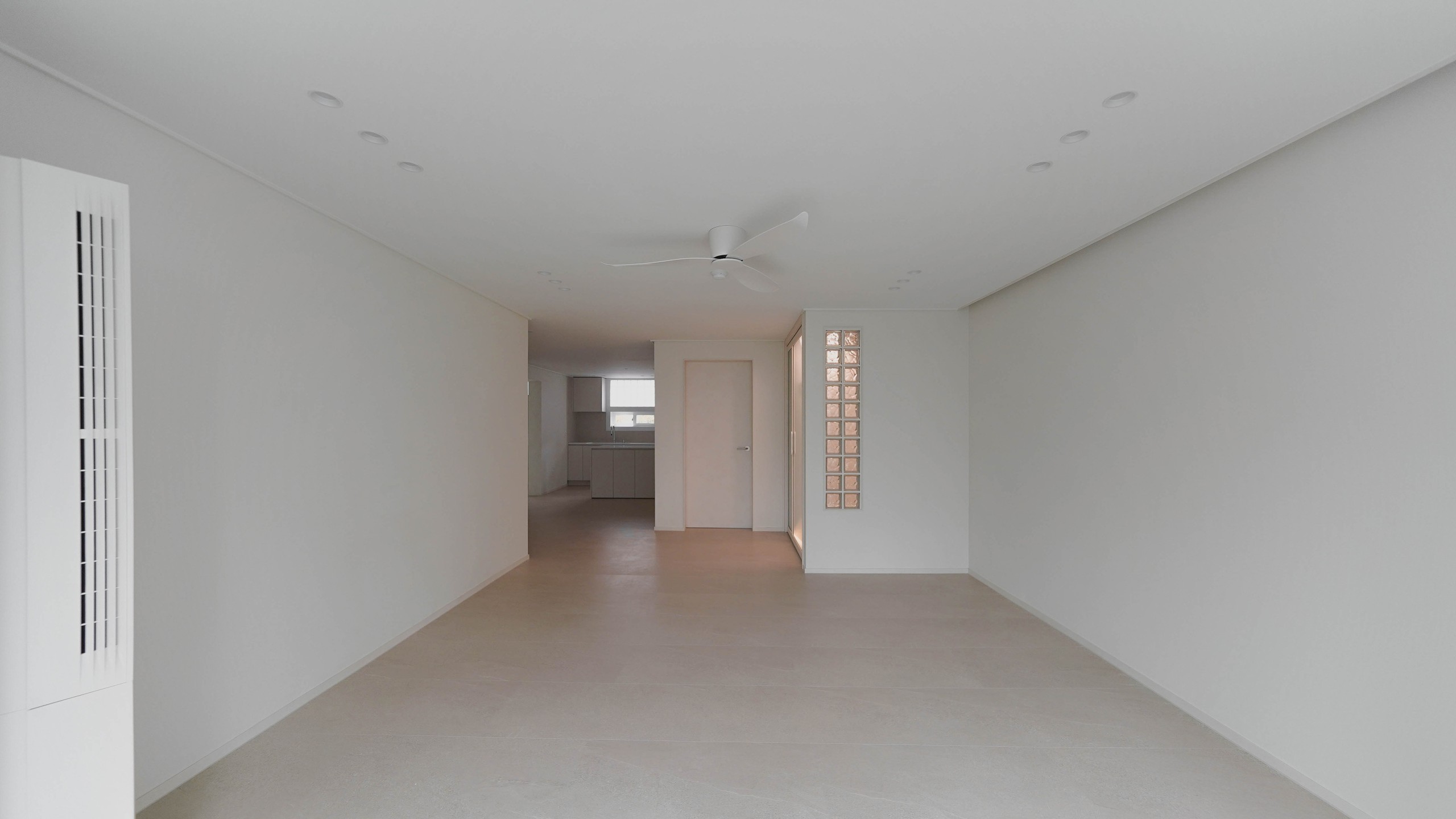 또 환기창 라인에 맞춰 유리블럭을 시공해주며 공간의 연결성을